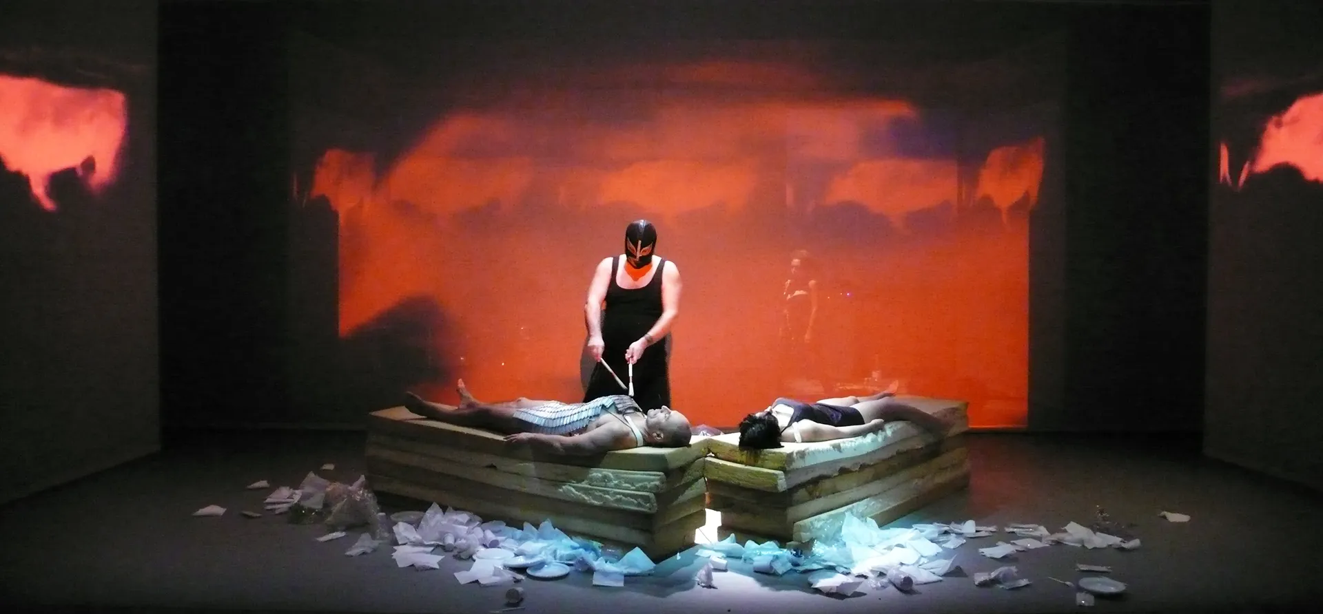 A choral episode sung by the Black|punk ensemble with OvO, a contemporary gladiatorial school, which elevates and vibrates this funeral performance in everlasting memory of the old histrion.
