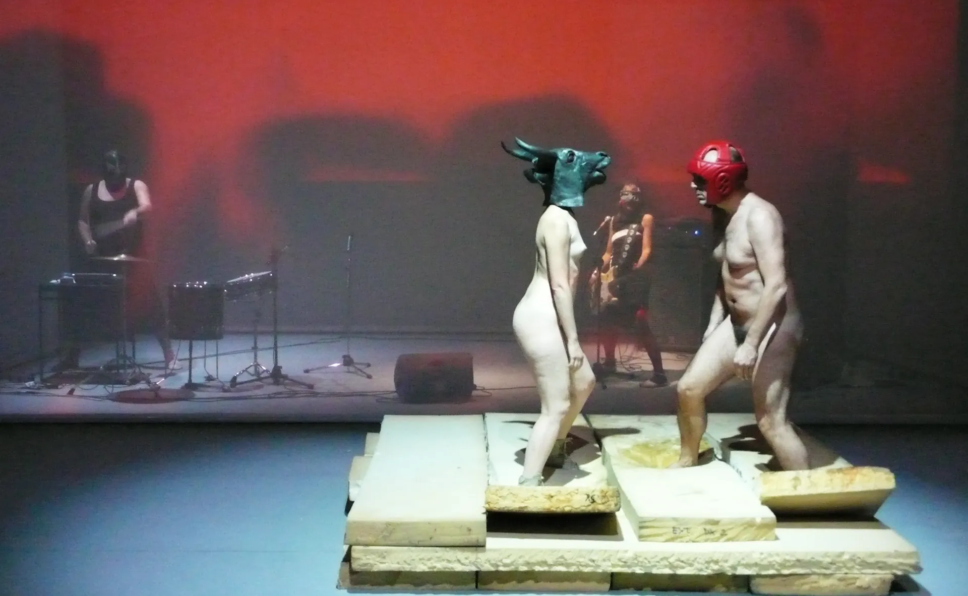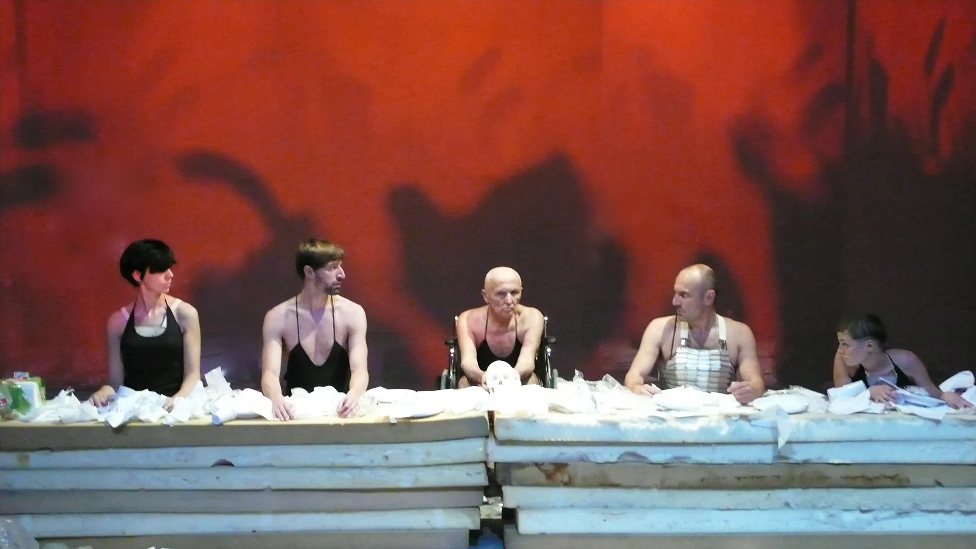 But on the table of the contemporary ceremony, other sacrifices are consumed and other gods are honored: the cruelty of a demented pater, the horror of maternal love, the torment of old age, the grotesque brutality of the familia, the horror of bodies in erotic constraint, the violence against dying animals, the neuroleptic transit into the afterlife, materialize in a skeletal epic without consolation.