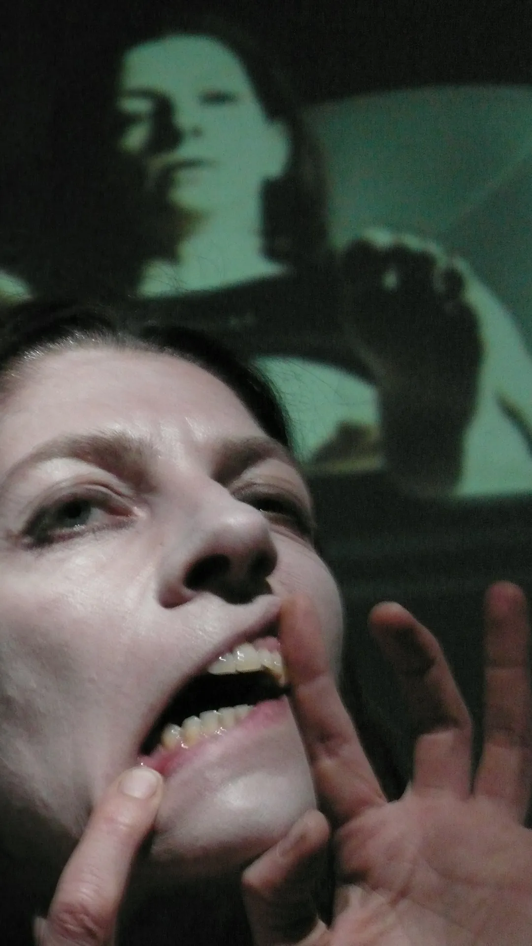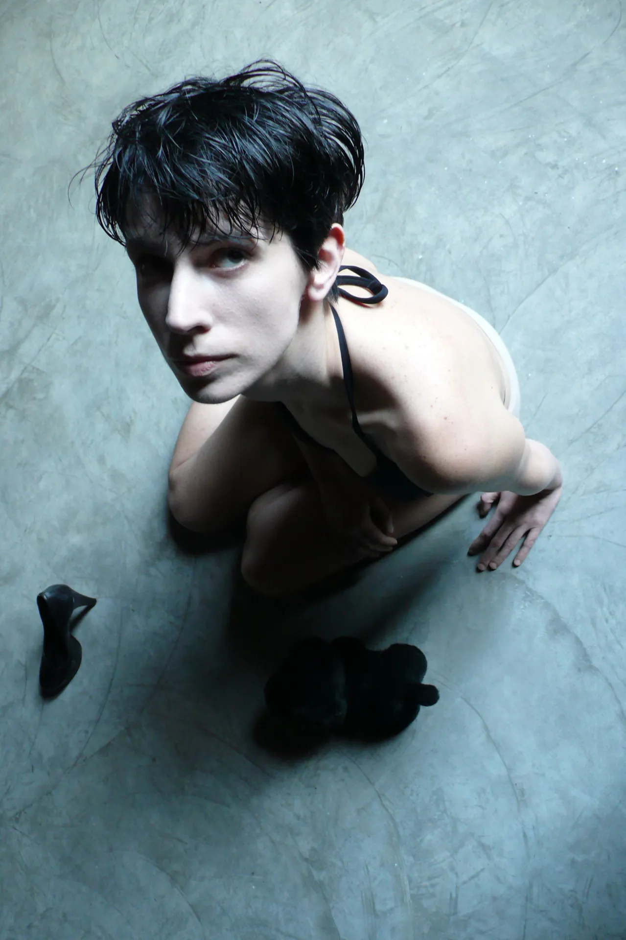The five scenes are woven from the electronic score developed by Andrea Azzali, a historic collaborator of the company, who built an “sounding” timeless habitat: a dialogue between the polyphonic compositions of Orlando di Lasso's “Prophetiae Sibyllarum” (1560) and the voices of the actresses broken down and fragmented into echoes and reverberations. Textual waves fade into a continuum of sound foams becoming vocal vapors, murmurs, regurgitations, rocky borborygms, terminal products of a drying process, of dehydration of the sound frequencies of the voice.