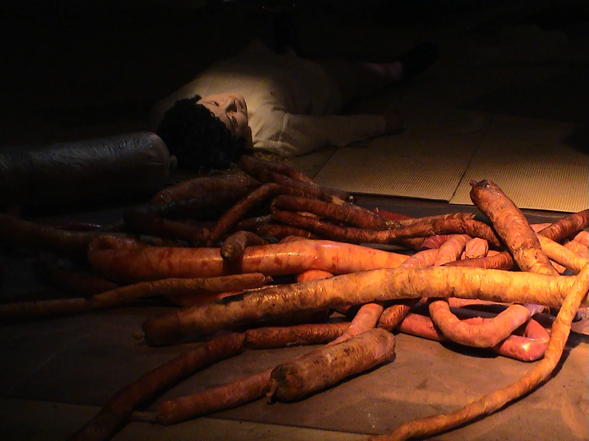As in other dramatic parables of LENZ, even in the heroic model proposed by POLLICINO the possibility of resurrection appears ambiguous, infinite-instead-the eternity of the threat. The more at stake here is the resurrection as a discourse on "alternative" time, since in the original fairy tale model Tom Thumb, which so many times disappears and reappears between chthonic or visceral darkness and open sky or agrarian light or domestic lamp, is the bearer and lookout and auctioneer of the solar myth that wanders through spiral labyrinths (a kernel, an ear, an intestine ) and which between sleep and wakefulness is activated in the will of victory of the homunculus, as a cunning directed against Death. But wandering the Underworld without redemption is a common condition in the Modern; every exit from the labyrinth in this case proves apparent: either the Minotaur defeated in the depths reappears in the world of supposed salvation in multiplied copies, or it incorporates itself as a chrysalis into the victor himself, who ascends to the surface and, still unaware, prepares to bring contagion, rather than light, into the world.