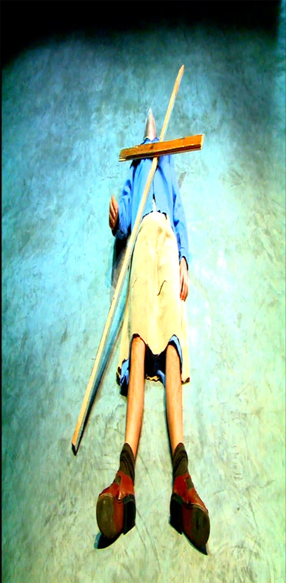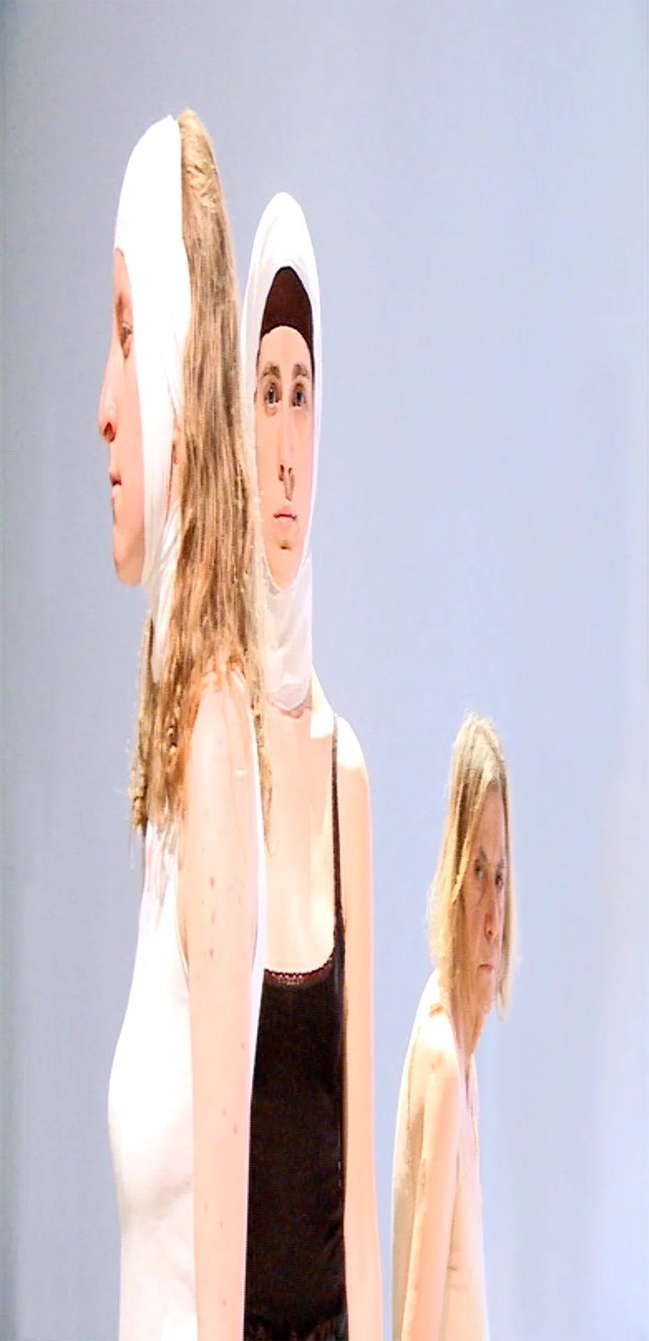 The farewell to the mountains, the farewell of everyone to their usual home, to the landscape painted on their eyes, refuges of safe, comforting, simple and benign spaces. Imprinted images, farewell and then the way opens to the life that remains, to the passing of time, to twisted thinking, to the blurred picture, to space without mental and rational space, without reason. This marriage does not have to be done, but it will be done, the merciful conjunction will be fulfilled between the rebirth of the simple and its tremendous complexity. Bodies move, spin, float in the picture frame, the dark space on the right and left presses them in the center but offers them protection as they open up to the unknown. It is up to the sensitive actor who generated them, on this side of the virtual, to call them back to life, to the suspended and limited time of theatrical existence.