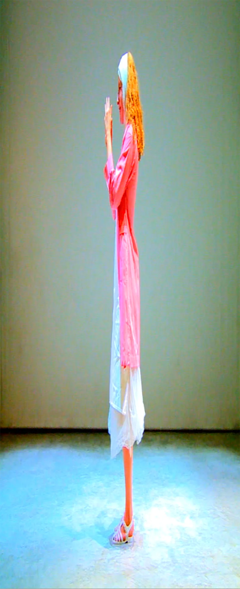 In vitro bodies, self-propelled, smiling like unborn babies forced by history, by the history of their little big stories, of each one, of the spouses promised from the first cry, noises and sounds of future neighbors full of effort, fear, redemption. Shiny bodies, squeezed into narrow spaces by the frames, the boundaries, verticals of black walls of anxiety, of anguish, of defeat. Elongated bodies, from bottom to top, figures “similarly different” to those of Doménikos Theotokópoulos (El Greco), Giacometti, Modigliani, simple and sacred at the same time. Like stained glass windows of large basilicas pulsate chromatically in every room, glassy rocks from the volcanoes of the ego.