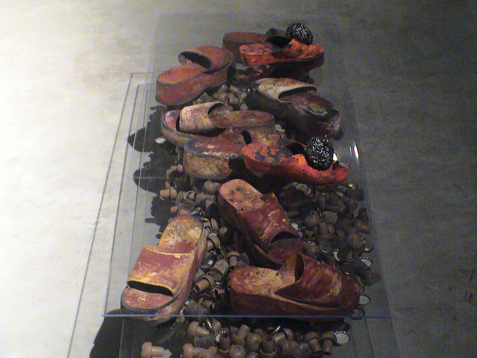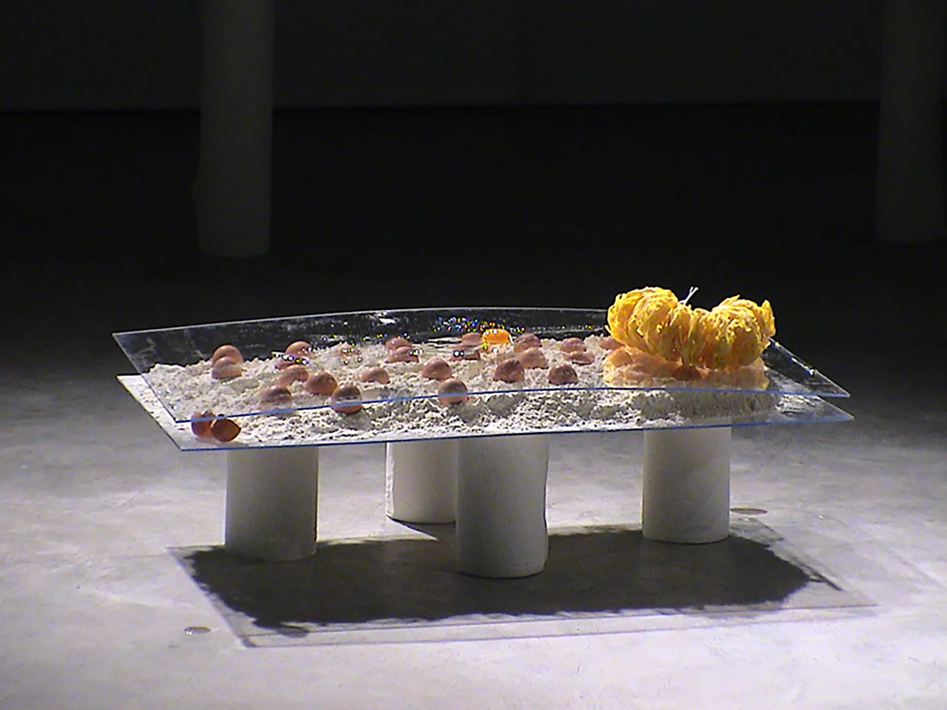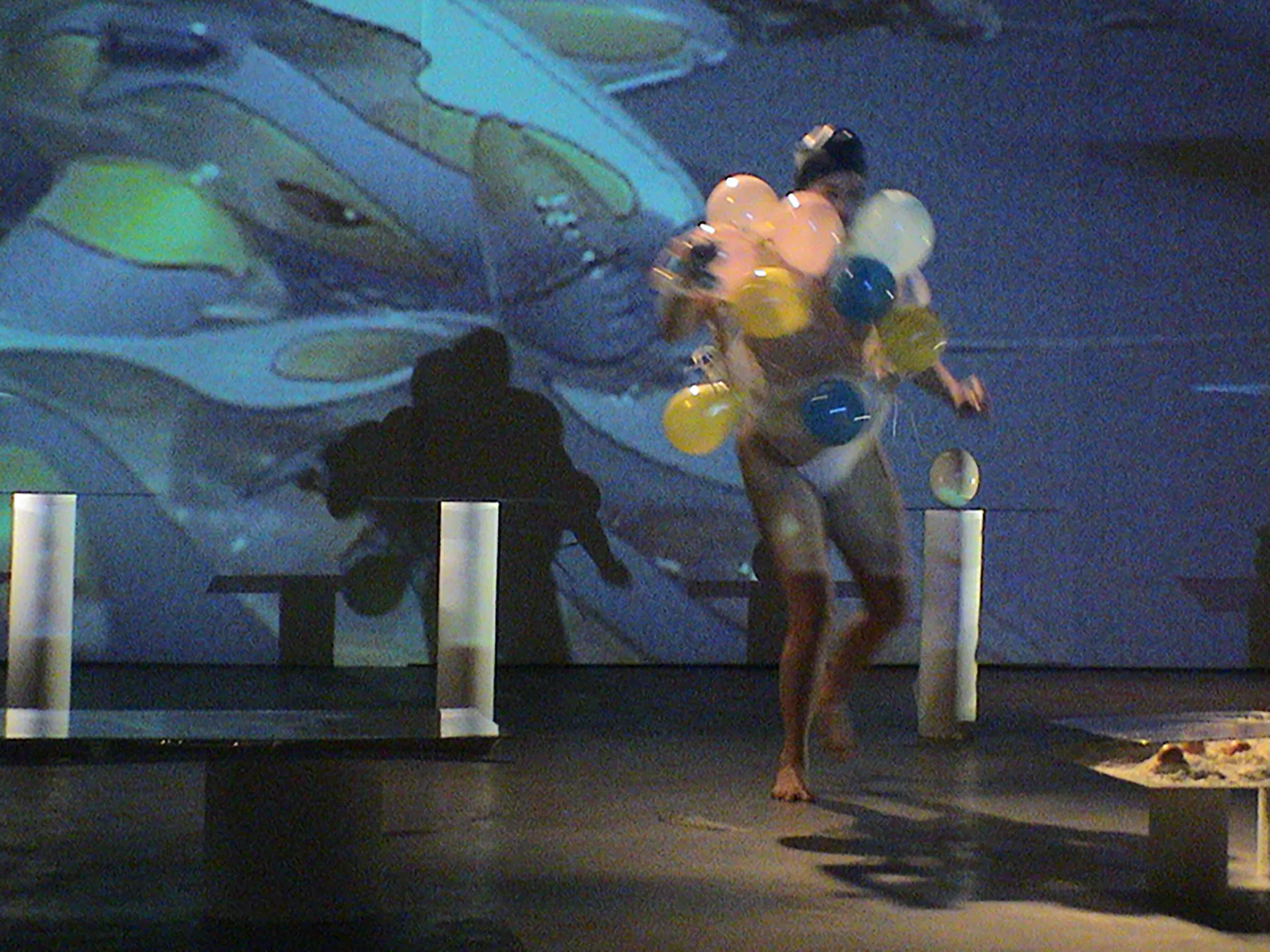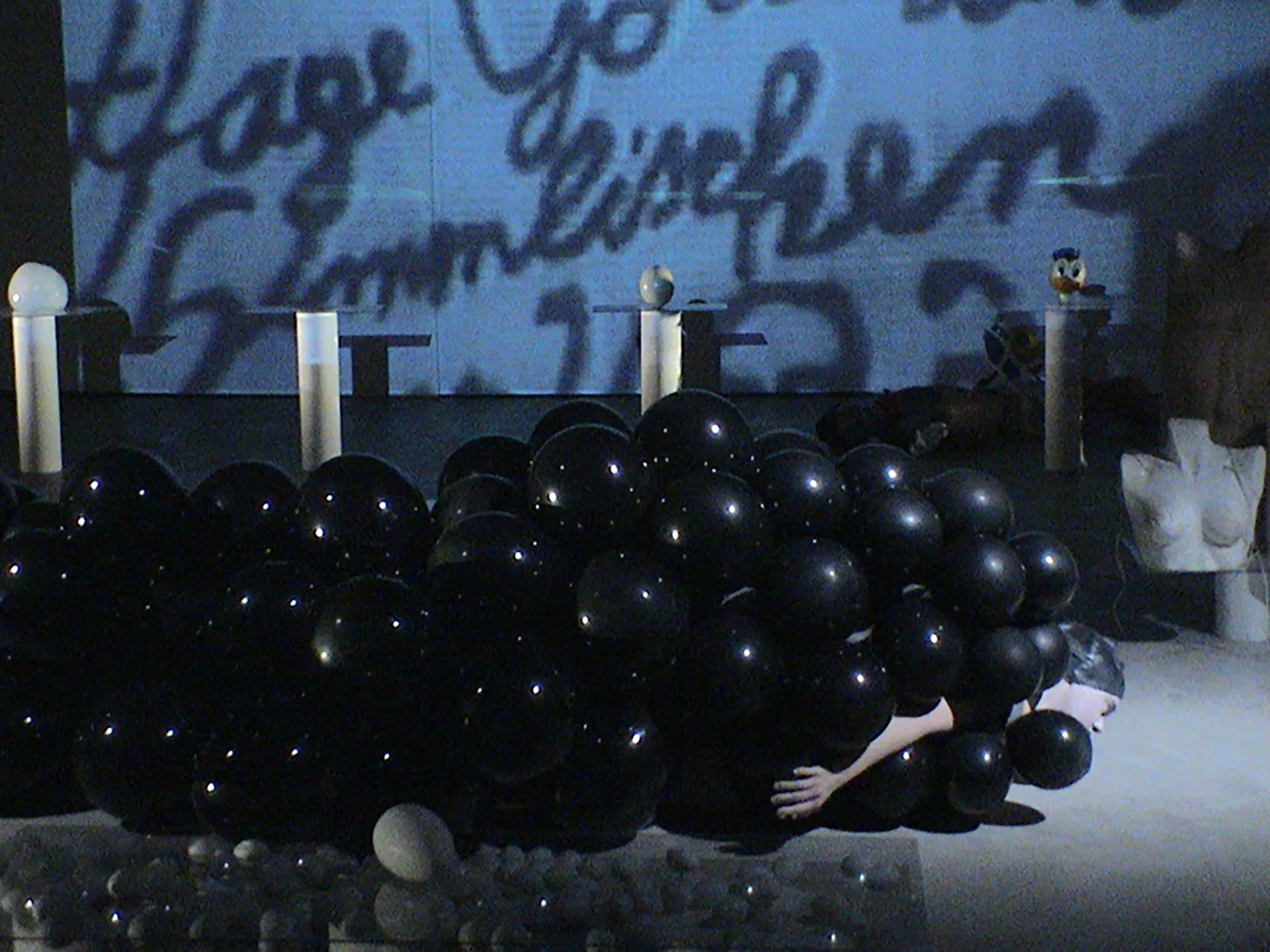 A selection of around thirty pieces parade through an exhibition scenic space, the works that most forcefully express the visual dramaturgy accomplished in three years of work. The ensnared and sumptuous bibliophilia of Faust's costume; the prison damnation of Margaret armoured by a carded bustier pierced by an arabesque of pointed nails, a loving body condemned to show dried udders of rags fleshy only with glue; the volatile costume of Ariel, suspended by the multitude of gaseous helium that feeds the black breath of Faust's moral evil, these are some of the fundamental customs for the visual re-inscription of the dramatic verb.